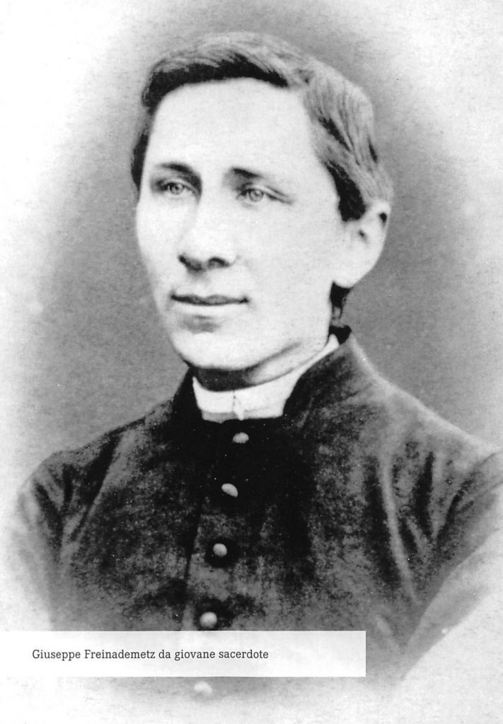 Józef Freinademetz został beatyfikowany w dniu 19 października 1975 w Rzymie przez papieża Pawła VI,  kanonizowany, również w Rzymie, 5 października 2003 (razem z Arnoldem Janssenem) przez Jana Pawła II. Urodził się 15 kwietnia 1852 roku w Oies w południowym Tyrolu jako czwarte dziecko Jana i Anny z domu Algrong. Tego samego dnia został ochrzczony w kościele parafialnym św. Leonarda. Freinademetzowie mieli 13 dzieci,  z których czworo zmarło wkrótce po urodzeniu. Rodzina żyła bardzo skromnie i musiała ciężko pracować na swoje utrzymanie.